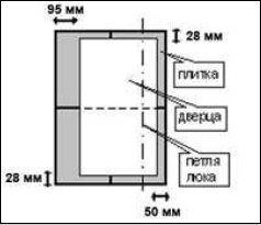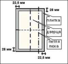 Внимание! Наклеенная на дверку люка керамическая плитка обязательно должна выходить за габариты дверки от 0,5 см до 7 см (и более для крупной плитки). Со стороны петли допускается выход плитки до 5 см. При этом не менее 60% площади плитки должно быть наклеено на дверку люка.