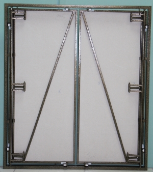 За способом відкривання дводверні люки виготовляються в двох варіантах: розпашні або натискні.