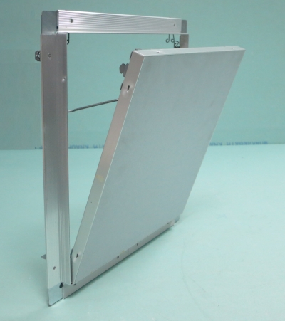 Люк скрытого монтажа открывается путем нажатия на дверцу люка, при этом после разблокирования пружинного замка дверца удерживается предохранительными петлями. При необходимости дверцу люка можно вынуть полностью и обеспечить полный доступ к скрытому объекту.